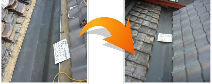 雨漏り調査すると瓦がなく金属板で補修をされていたため瓦に差し替えさせていただきました。修理費6,000円