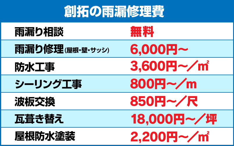 お電話1本!創拓の雨漏り救急隊!にお任せください。