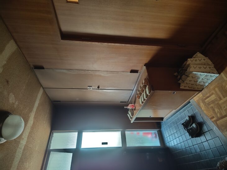 元々観音開きの扉があった場所を利用して棚を設け、玄関収納を設置しない広々とした玄関に!