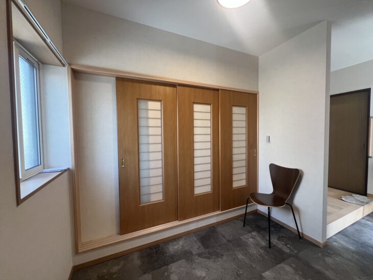 今回のリフォームでは、以前から使われていた3枚引き戸をそのまま流用。