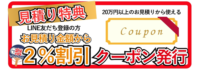 LINE公式アカウントに友だち登録のうえ、20万円以上のお見積りをご依頼いただくと、見積金額から 2%割引 となるクーポンを発行します。