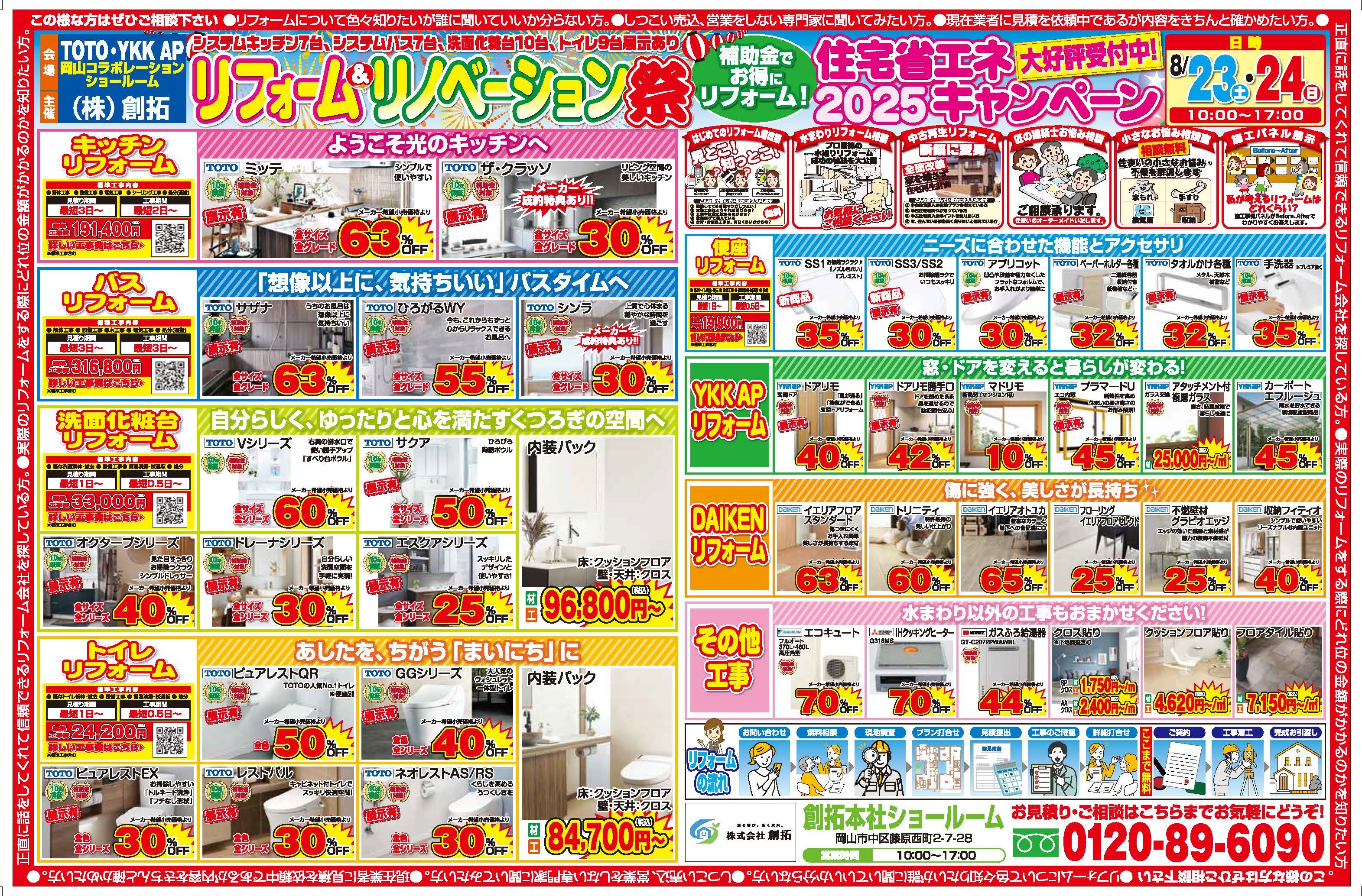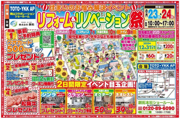 夏のリフォーム&リノベーション祭 ㏌ TOTO・YKK AP岡山コラボレーションショールーム(終了しました)
