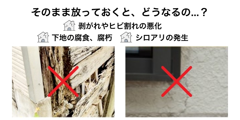 (※塗料や壁材の種類、雨・風・紫外線などの環境要因によっても変わってきます。)